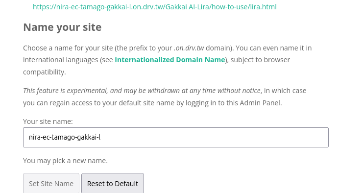 ページの最下部にサイト名を変更する部分があるので、わかりやすい名前に書き換えておくことをおすすめします。