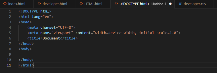 <!DOCTYPE html > <html lang ="ja" > <head > <meta charset ="UTF-8" > <meta name ="viewport" content="width=device-width, initial-scale=1.0" > <link rel ="shortcut icon" href ="ファビコンのファイル名" type ="image/x-icon" > <link rel ="stylesheet" href ="CSSのファイル名" > <title >サイト名(ブラウザのタブに表示される)</title > </head > <body ><!-- ここにページの内容を書き込む --> </body > <script src ="JavaScriptのファイル名" ></script > </html >