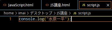 let ippei =60 ;// 変数を実行する際は console.log();に直接変数名を書き込む console .log ( ;ippei )
