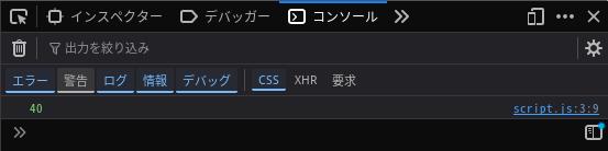 let ippei =60 ;ippei =40 ;// 既存の変数を書き換えるので let は付けない。 console .log ( ;ippei )