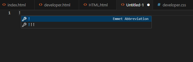 visual Studio Codeを起動 → ファイル作成 → 言語選択でHTMLを選択・・・
