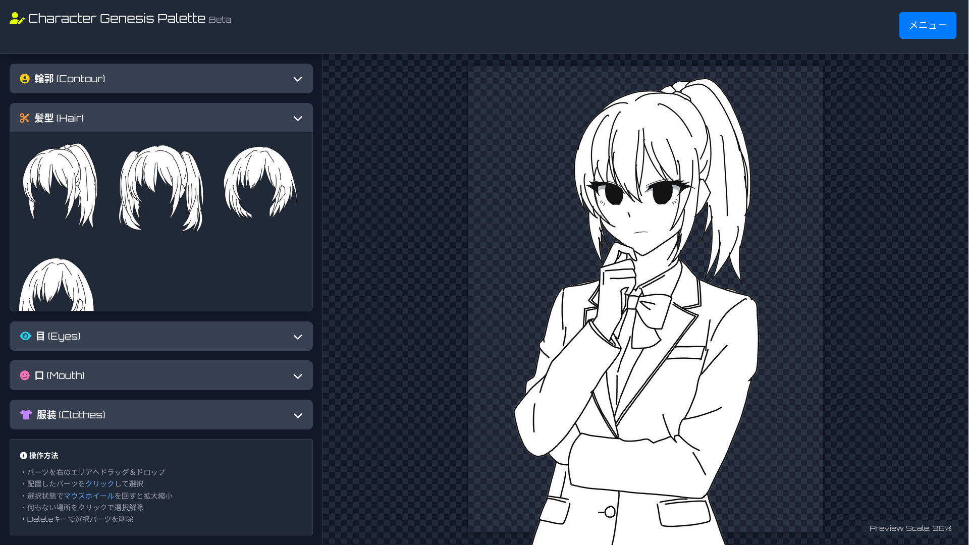 このツールではその名の通り、Novel Genesis Paletteでの立ち絵を簡単に作成ができるツールになっています。
